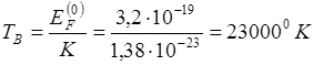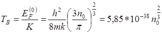 При температурах выше некоторой температуры TB, которая называется температурой вырождения системы, свойства системы фермионов изменяются так, что квантовая статистика Ферми-Дирака при Т>TB переходит в классическую статистику Максвелла-Вольцмана. При температуре выше температуры вырождения часть фермионов можно рассматривать как невырожденный классический газ. Температура вырождения системы зависит от ее энергии Ферми, т.е. от концентрации частиц n0, увеличиваясь с ростом n0.