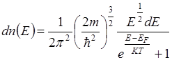 Функция g(E) характеризует число квантовых состояний в единице объёма в единичном интервале для свободных частиц и носит название плотности квантовых состояний. Из (9) следует, что плотность квантовых состояний для свободных частиц, подчиняющихся статистике Ферми-Дирака, растет с ростом энергии: