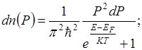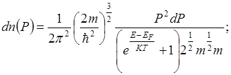 Зная распределение dn(E) электронов в металле, можно установить распределение dn(P) электронов, по импульсам. Определим частичный случай распределения при Т=О.
