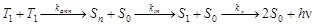 В результате аннигиляции двух триплетно-возбужденных молекул в состоянии Т 1 одна молекула переходит в высоковозбужденное синглетное состояние S n , а затем - в первое возбужденное синглетное состояние S 1 , другая – непосредственно в основное состояние S 0 . Из состояния S 1 молекула переходит в основное синглетное состояние с излучением кванта флуоресценции.