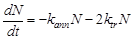 После прекращения возбуждения убыль триплетно-возбужденных пар может происходить двумя способами – как непосредственно за счет процесса триплет-триплетной аннигиляции, так и за счет внутримолекулярной дезактивации триплетного возбуждения хотя бы одной из молекул, входящих в пару. Следовательно, для скорости изменения числа пар можно записать: