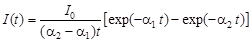 , после раскрытия которой по правилу Лопиталя получаем экспоненциальный закон затухания замедленной флуоресценции