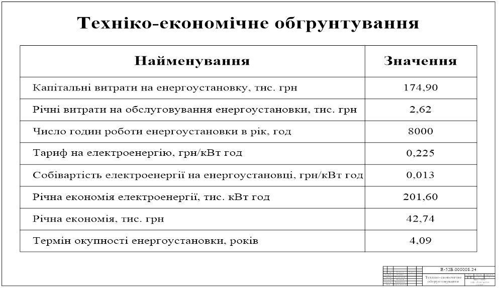 Капитальные затраты на энергоустановку – 174 900 грн