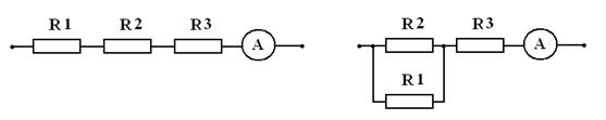 Як зміниться показ амперметра, якщо від схеми, яка показана на малюнку 2, перейти до схеми на малюнку 3? Напруга залишається сталою.