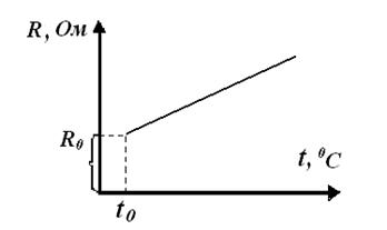 Якщо інтервал зміни температури невеликий, то температурний коефіцієнт можна вважати сталим. Оскільки він не змінюється, то графічна залежність R(t) має вигляд прямої: