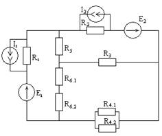· Упростить схему, заменив последовательно и параллельно соединенные резисторы четвертой и шестой ветвей эквивалентными, а источники тока преобразовать в источники напряжения. Дальнейший расчет вести для упрощенной схемы.