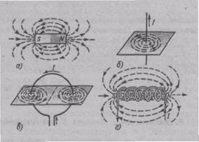 3. Вид линий магнитной индукции простейших магнитных полей показан