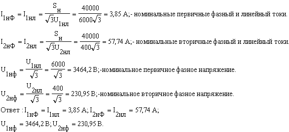 1. Для заданного трансформатора определить номинальные линейные и фазные первичные и вторичные токи и напряжения.