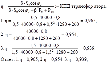 Мощность потерь трансформатора в режиме холостого хода Р0 =260 Вт; Мощность потерь трансформатора в опыте короткого замыкания Рк =1280 Вт;