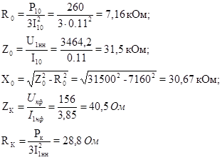 3. Рассчитать величину фазного напряжения, которое подводится к трансформатору в опыте короткого замыкания, и его активную и реактивную составляющие.