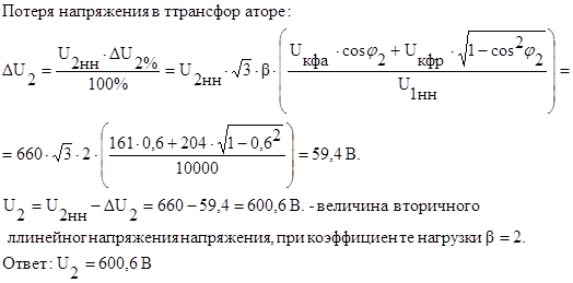 Определить напряжение на зажимах вторичной обмотки трансформатора