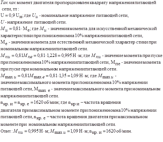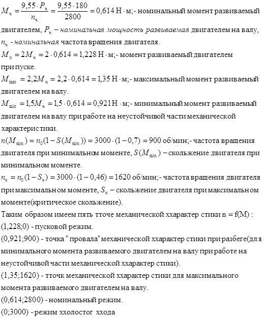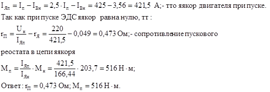 5. Определить величину сопротивления пускового реостата, необходимого для ограничения пускового тока двигателя до I п =2,5 I н . Определить при этом пусковой момент двигателя.