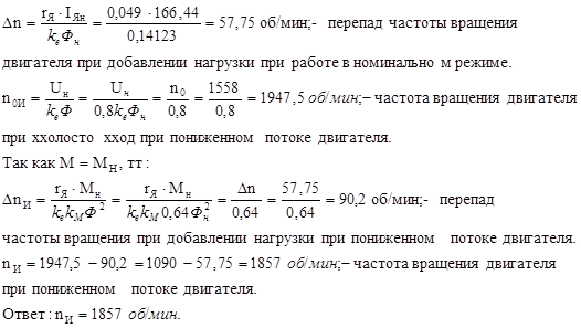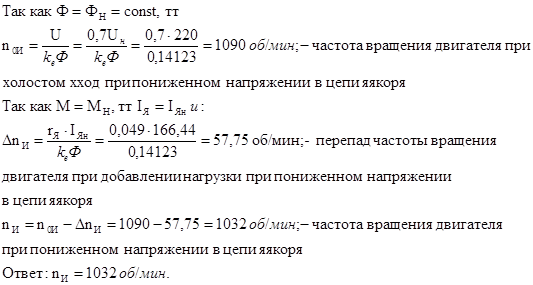 6. Определить частоту вращения якоря двигателя при номинальном моменте и при следующих параметрах, отличных от номинальных:
