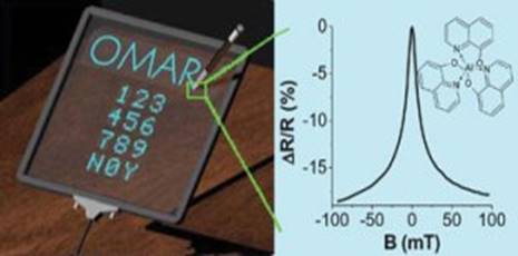В 2004 группа исследователей из Университета Айовы обнаружила необычный магнитный эффект, проявляемый пленками органических полупроводников. При приложении слабого магнитного поля к пленке ее электрическое сопротивление понижалось примерно на 10%. Эта необычная чувствительность к магнитным полям, известная как магниторезистивность, ранее проявлялась только для ферромагнитных материалов, как, например, железа. Причина наблюдаемого явления тогда, три года назад, не была выяснена.