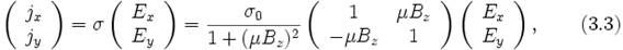 где тензор σ называют тензором проводимости двумерного дырочного газа в магнитном поле.