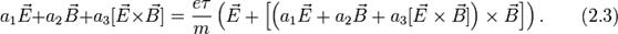 где m — эффективная масса дырки, e — элементарный заряд, τ — время релаксации по импульсам (время между столкновениями, когда происходит существенное изменение импульса). Решение этого уравнения можно искать в виде суммы трёх векторов, которые определяют базис трёхмерного пространства.