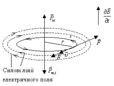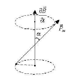 Згідно з рівнянням (14.1.5) змінне в часі магнітне поле породжує вихрове електричне поле, струм якого згідно з правилом Ленца має бути протилежний до діючого мікроструму і.