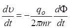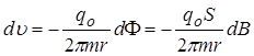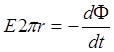 - змінне в часі магнітне поле; dS – площа контуру вздовж якого рухається електрон; Е – напруженість вихрового електричного поля, породжена зміною магнітного поля.