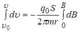 Інтегруємо останній вираз у межах зміни швидкості від о до, а індукції магнітного поля від 0 до В