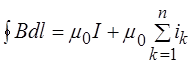 Замкнутий контур, показаний на рис.14.4, охоплює певну кількість атомних струмів іk , а також струм провідності І.