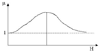 Магнітна проникність і магнітна індукція у феромагнетиках залежить від величини напруженості зовнішнього магнітного поля. (рис.14.6)