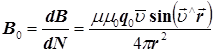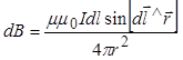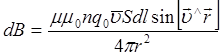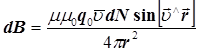 де dB - індукція магнітного поля, яка створюється dN зарядами на відстані r від елемента струму, у якому рухаються ці заряди.