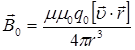 У векторній формі індукція магнітного поля рухомого заряду записується так