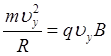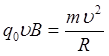Сила Лоренца в цьому випадку виконує роль доцентрової сили, під дією якої заряджена частинка буде рухатися по коловій траєкторії. Рівняння руху зарядженої частинки запишеться