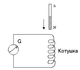 З’єднаємо соленоїд з гальванометром, як це показано на рис.12.7. Якщо постійний магніт вводити в котушку і виводити з котушки, то гальванометр покаже в колі наявність електричного струму. Напрям відхилення стрілки гальванометра змінюється при введенні і виведенні постійного магніту.