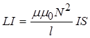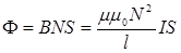 З іншого боку, якщо в просторі, де перебуває контур зі струмом І, відсутні феромагнетики, то поле В , а це означає і повний магнітний потік Ф через контур, буде пропорційним силі струму, тобто