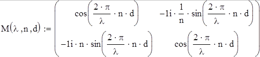 Определим характеристическую матрицу-функцию для одного слоя: