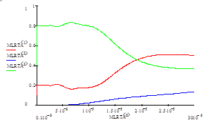 На рисунках 6.1, 6.2, 6.3 приведены рассчитанные программой MathCAD спектральные зависимости энергетических коэффициентов пропускания, отражения и поглощения.