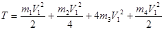 Кинетическая энергия рассматриваемой системы Т в конечном ее положении (рис.2) равна сумме кинетических энергий тел 1 , 2 , 3 и 4 :