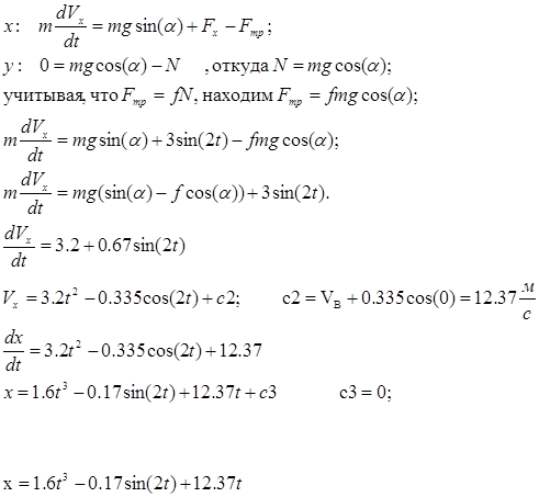 Найдем скорости и ускорения дифференцируя по времени уравнения движения