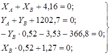 Составим уравнения относительно точки В.