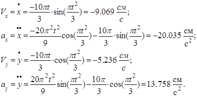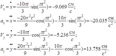 Здесь Vx , Vy , ax , ay – проекции скорости и ускорения точки на соответствующие оси координат.