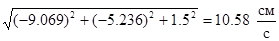at =(-9.069*(-20.04)+(-5.24)*13.76+1.5*0)/10.58=10.36 см/с