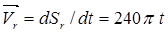 При t=1/3с Vr =80p=251.33 см/с.