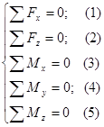 Для определения неизвестных реакций составим уравнения равновесия.
