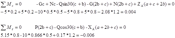 Из уравнения (4) определяем P, а затем находим остальные реакции опор. Результаты вычислений сведем в таблицу.