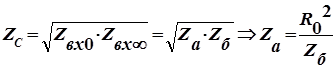 Если мостовой четырехполюсник нагрузить согласованно, т.е. нагрузить на его характеристическое сопротивление, то входное сопротивление четырехполюсника будет равно сопротивлению нагрузки т.е. равно характеристическому сопротивлению.