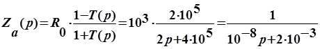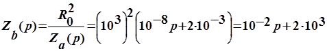 Следовательно Za(p) есть параллельное соединение активной проводимости Ga=2*10-3 СМ и ёмкости Ca=10-8 Ф, а Zb(p) есть последовательное соединение активного сопротивления Rb=2*103 Ом и индуктивности Lb=10-2 Гн.