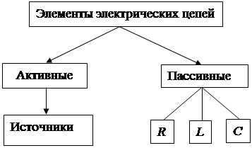 Различают активные и пассивные элементы электрических цепей. К первым относятся источники, а ко вторым – элементы резистивного сопротивления, индуктивности и емкости. Индуктивности и емкости часто называют реактивными элементами.