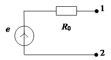 Величина e определяется из опыта холостого хода. Действительно, при разомкнутых зажимах 1-2 ток через R 0 не проходит и напряжение на нем равно нулю. Подключенный к этим зажимам вольтметр покажет напряжение равное e.