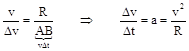 Ускорение направлено туда же, куда и изменение скорости, следовательно, ускорение направлено к центру окружности. Важное допущение: угол j настолько мал, что длина хорды AB совпадает с длиной дуги: