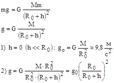 - радиус Земли. Рассмотрим зависимость ускорения свободного падения от высоты подъема над поверхностью Земли: