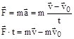 Импульс тела. По 2-му закону Ньютона изменение скорости тела возможно только в результате его взаимодействия с другими телами, т.е. при действии силы. Пусть на тело массой mв течение времени tдействует сила F и скорость его движения изменяется от vo до v. Тогда на основании 2-го закона Ньютона: