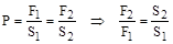 По закону Паскаля такое же давление создается внутри жидкости во втором цилиндре, т.е.