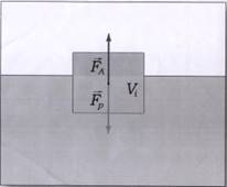 где р - плотность жидкости (газа), g - ускорения свободного падения, а V - объем погруженного тела ( или часть объема тела, находящаяся ниже поверхности). Выталкивающая сила, называемая также архимедовой силой, равна по модулю и противоположна по направлению силе тяжести, действовавшей на вытесненный телом объем жидкости (газа), и приложена к центру тяжести этого объема.
