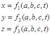 a , b , c – это постоянные, которые определяют положение точки в начальный момент времени.